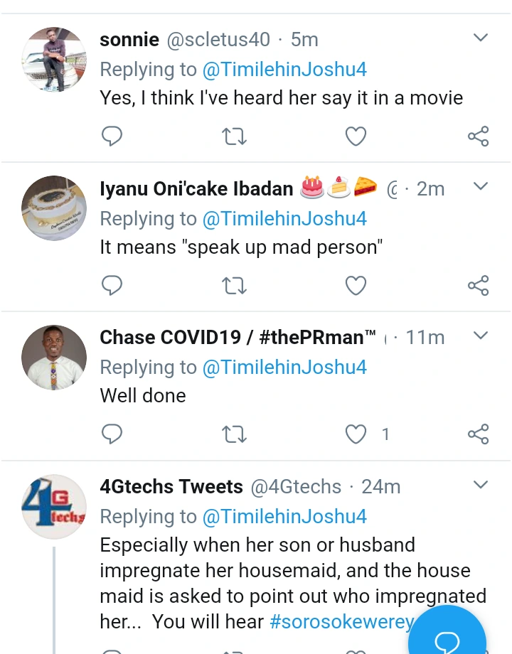 Also used for someone negatively outspoken and loudmouthed. Oct 18 2020 Werey literally translating to Speak louder madman Thats how the phrase Soro Soke eventually became the battle cry of the ongoing war. This does not imply that what the person is about to say is the truth or that it is healthy.